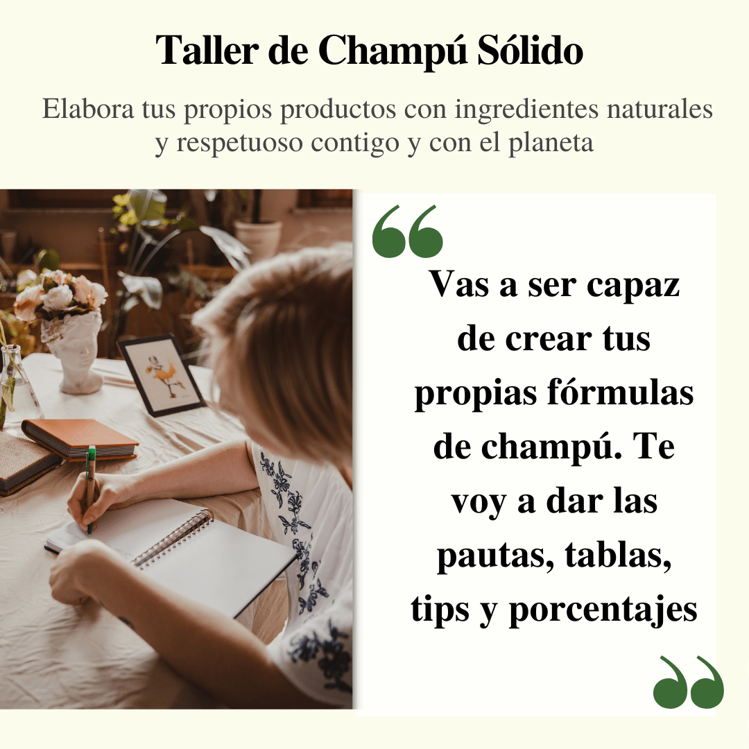 Este taller no solo es una experiencia creativa; es una inversión en ti y en el planeta. Aprenderás a tomar el control de lo que usas en tu cabello, a reducir tu impacto ambiental y a disfrutar de una alternativa natural que realmente funciona.