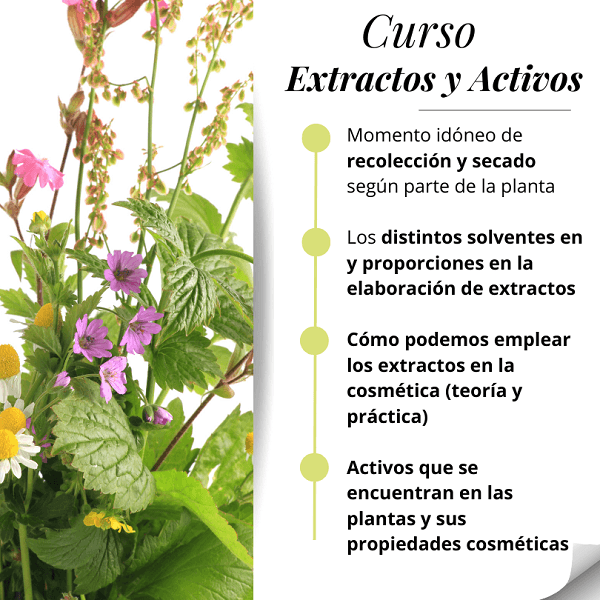 Una buena base para elaborar extractos parte de conocer los activos de las plantas. En este curso repasaremos los distintos tipos de extractos caseros que podemos hacer y sus proporciones, así como los momentos de recolección y métodos de secado de las plantas.