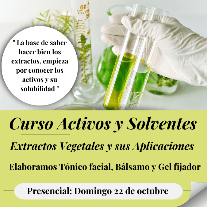 Veremos qué acción cosmética tienen ciertos activos de las plantas y su solvente más adecuado. En el aula realizaremos tres formulas cosméticas.